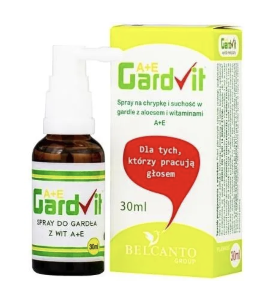 - Gardivit to płyn o aromacie miętowym do pryskania gardła